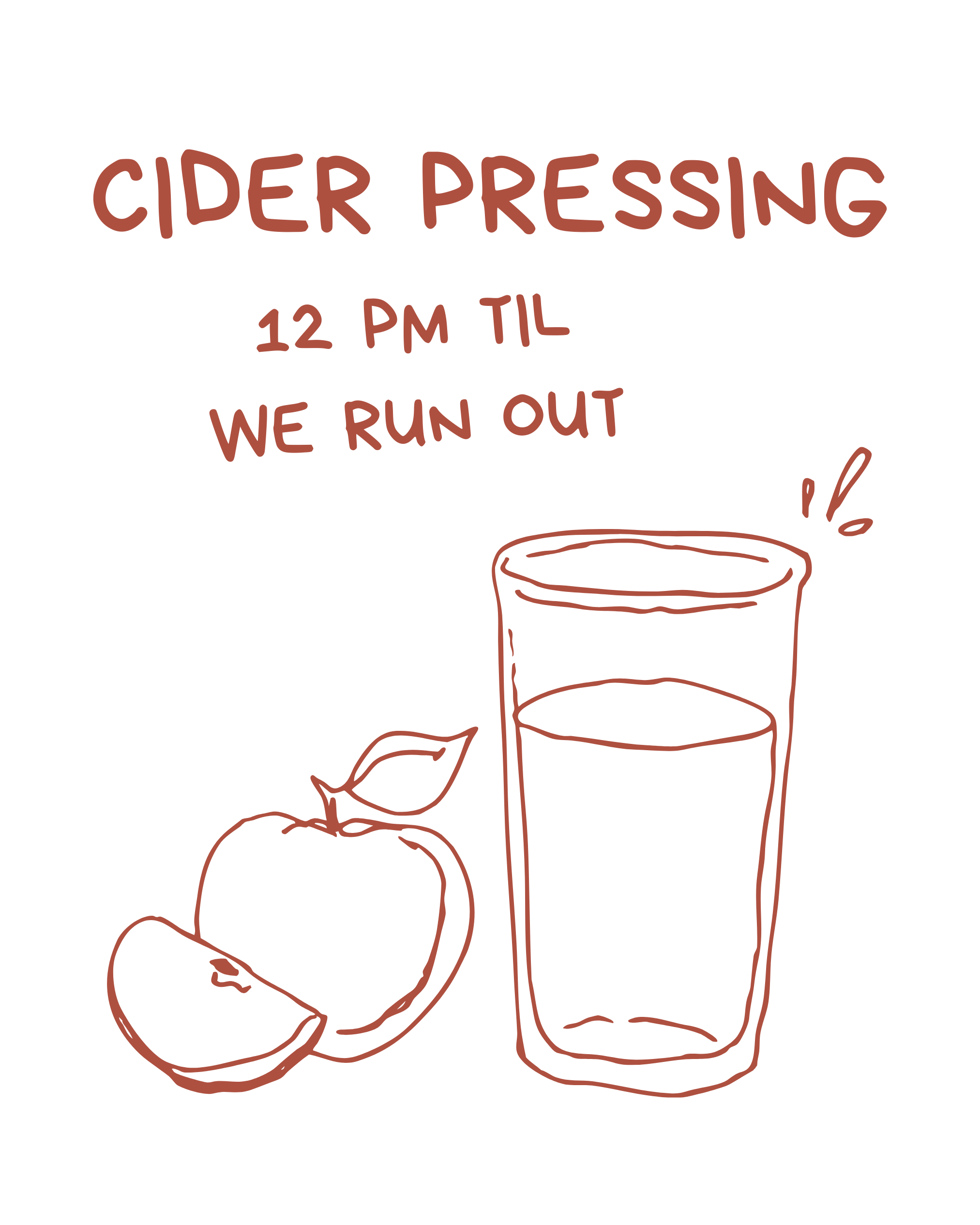 Fresh apple cider pressing! Music! Community! Friendship! Food!
